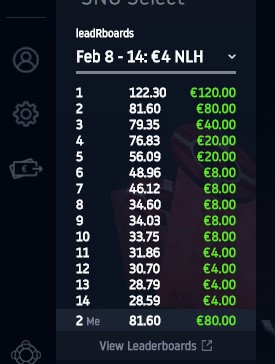 W trakcie walki o leadeboard spotkałem się z bardzo ciekawym zjawiskiem. Otóż czołowi gracze z rankingu trzymali się stategii: „gramy z każdą ręką (najlepiej raise), oglądamy każdego flopa, w każdym rozdaniu płacimy rake”. Wbudowany w soft HUD pokazywał, że grali statsami: 80/60 i pokrewne. Grając w ten sposób, nabijali dużo punktów rankingowych i myślałem, że realnie miejsca w top-3 zupełnie są poza moim zasięgiem. Oni chyba też, bo odpuścili granie. Lider w ogóle w niedzielę nie grał, a i tak nie było szans się do niego zbliżyć. Inni gracze pojawili się w niedzielę koło 17:00, a ja już wtedy miałem ich na wyciągnięcie ręki, mimo iż w ujęciu absolutnych byłem dopiero na szóstej pozycji. Obserwowałem ich grę. Widziałem, że gromadzą punkty szybciej ode mnie i doszedłem do wniosku, że trzeba się wycofać z wyścigu, bo nie jestem w stanie dotrzymać im kroku. Oni po prostu realizowali inny cel – oni chcieli otrzymać te kilkadziesiąt euro nagrody, a zupełnie nie liczyli się z kosztami.