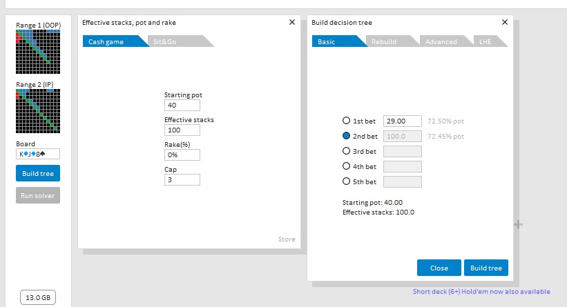 O to „choć nie zawsze” sprawa się rozbija. W wielu sytuacjach, np. w grze bez pozycji, na specyficznej strukturze boardu, c-betowanie wcale nie jest zagraniem, które powinniśmy wykonywać. Nie ma sensu grać c-beta, jeśli to nasz rywal dysponuje większością omawianych wyżej przewag. Co ciekawe w takich przypadkach solvery rekomendują strategię złożoną z czekania w niemal 100%. Szczegółowe rozważania na ten temat wybiegają niestety poza ramy tematyczne niniejszego artykułu.