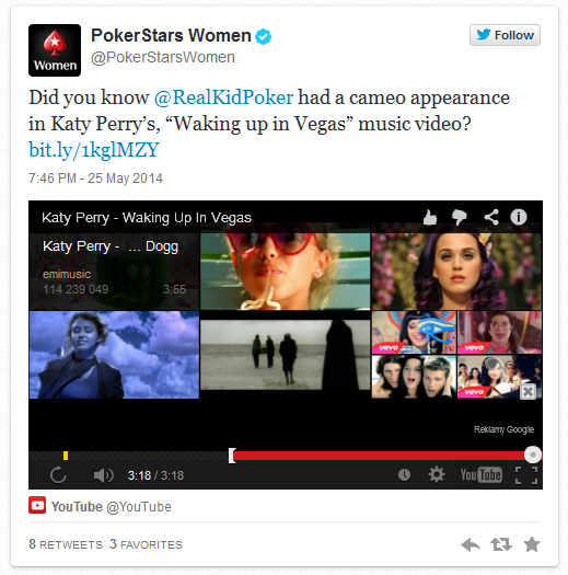 Dzięki PokerStars Women dowiedzieliśmy się, że „Poker Kid” wziął udział w klipie Katy Perry do piosenki „Walking up in Vegas”. Obejrzyjcie i zobaczcie, „gdzie jest Wally?”.. tfuu, „gdzie jest Nagreanu?”
