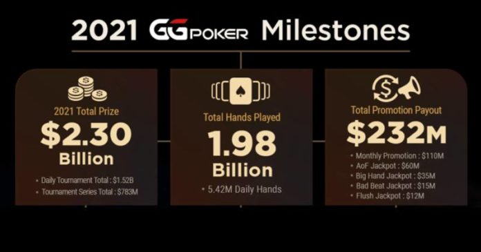 To był bardzo udany rok dla GGPoker. Tylko w 2021 roku rozegrano na tej platformie 1,98 mld rozdań! Jeśli wyciągniemy z tego średnią, wychodzi 5,42 mln każdego dnia.