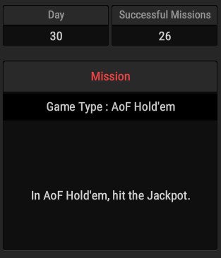 - Misja 3 – rozegraj 70 rozdań w AoF (All-in or Fold)