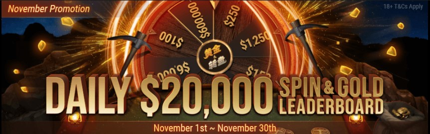 GGPoker dba o wszystkich swoich graczy, dlatego też oferuje codzienne wyścigi punktowe miłośnikom gier Spin & Gold. Każdego dnia gracze biorący udział w promocji rozdzielają pomiędzy siebie aż 20.000$, co przekłada się na 600.000$ w skali miesiąca!