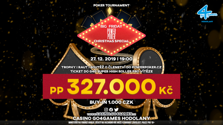 Tydzień później emocje będą jeszcze większe, bo w  Big Friday Christmas Powerpoker Special zagracie aż o 300.000 CZK. To turniej na każdą kieszeń, bo zagracie w nim już za 1.000 CZK. Na zwycięzcę czeka okolicznościowy puchar oraz bilet wstępu do styczniowego Go4Games Casino Super High Roller o wartości 27.000 CZK. Uczestnicy turnieju będą mieli do dyspozycji bufet.