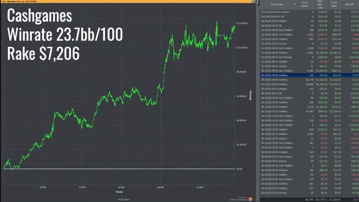 Oto wyniki, jakie osiągnął w poszczególnych odmianach pokera:
