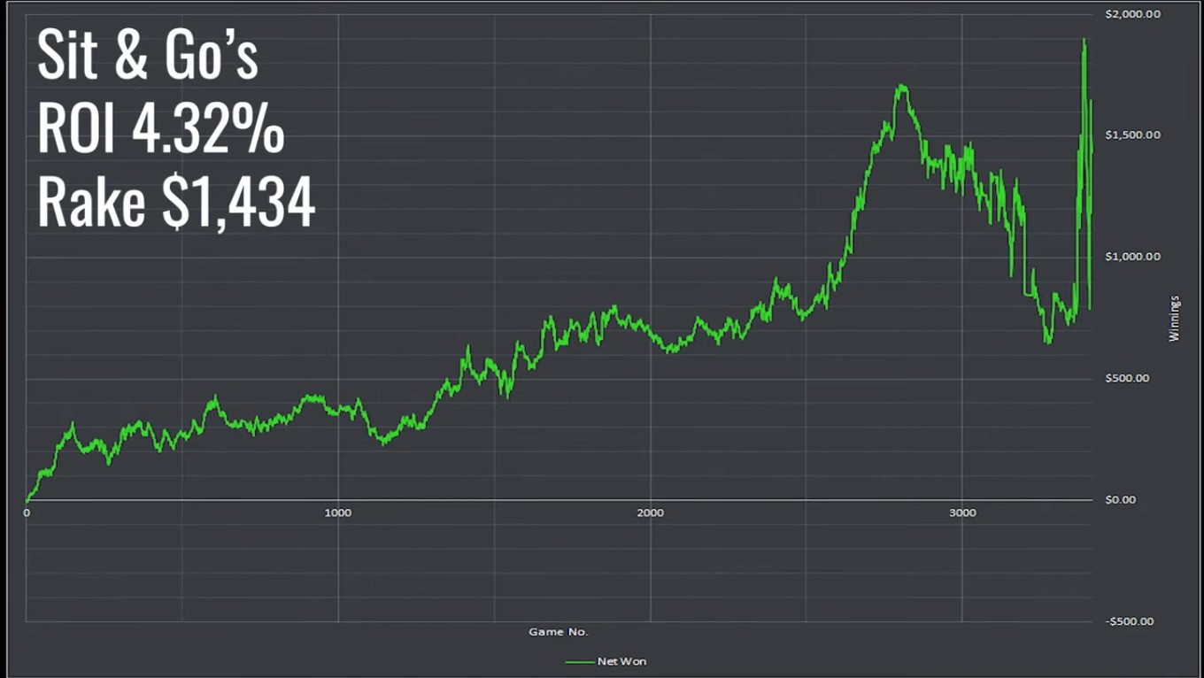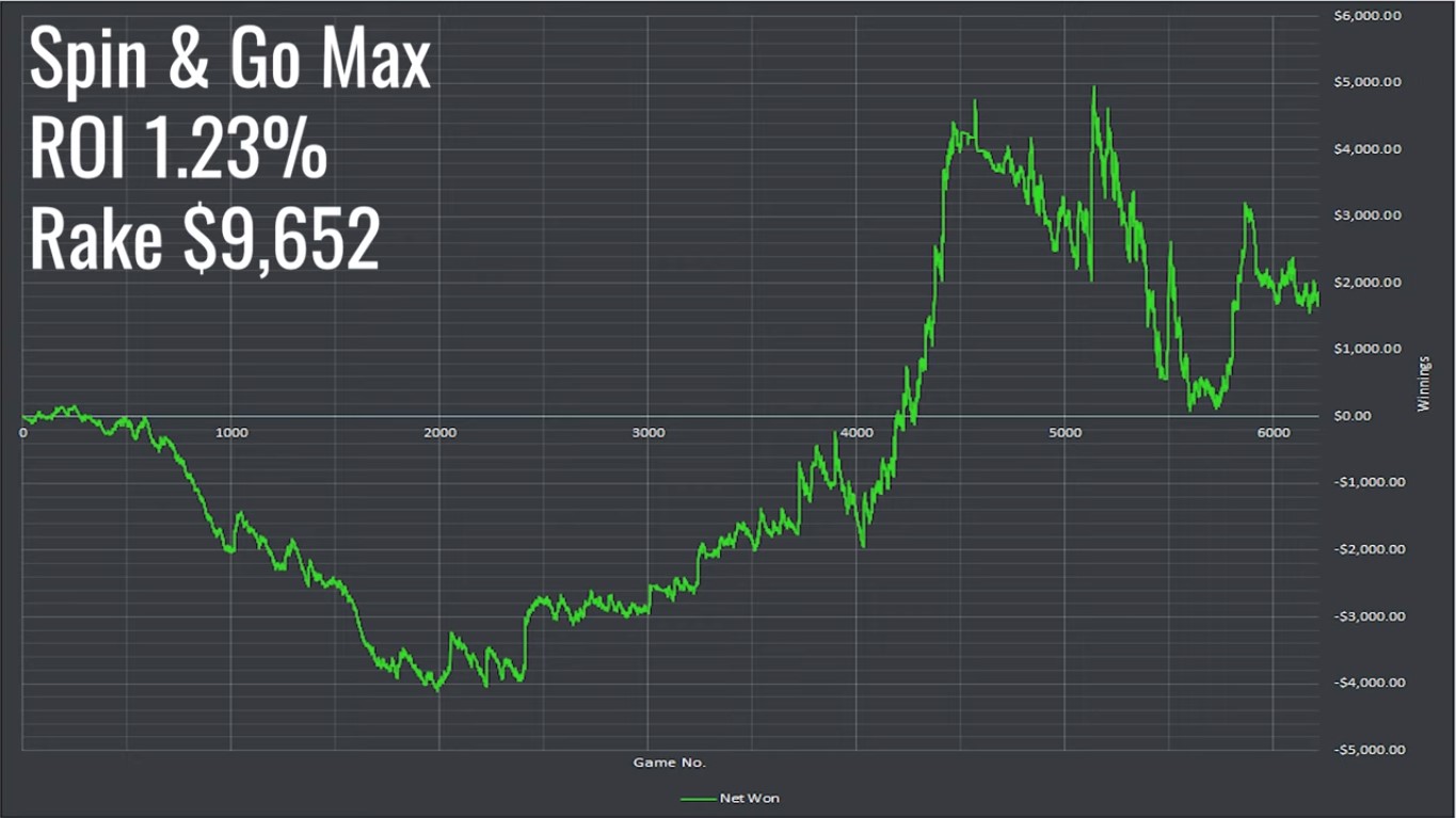 Nasz bohater nie jest specjalistą od tego formatu, jednak wyniki mówią same za siebie. Według jego obliczeń, Mackenzie zarobił – , w dużej mierze dzięki dużej wygranej, którą możemy zobaczyć gdzieś w ¾ wykresu – średnio ponad 20$ na każdym turnieju, w którym wziął udział. Jego zdaniem ta odmiana, podobnie jak turnieje Spin & Go Max, również cechuje się dużą wariancją, przez co może nie być najlepszym wyborem dla wszystkich graczy, szczególnie tych, którzy mają problemy mindsetowe.