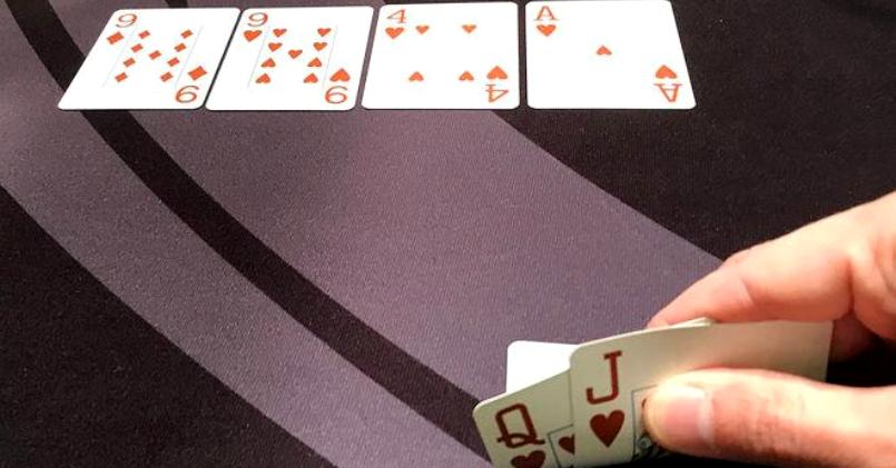 W takiej sytuacji najlepiej jest zachęcić rywali do tego, aby sami zagrali z gorszymi rękami. Jedną z możliwości jest zaczekanie, a druga to mały bet. W powyższym rozdaniu zdecydowałem się na to pierwsze i rzeczywiście oponent na cutoffie zagrał. Button spasował, a ja sprawdziłem licząc na to, że rywal ma asa lub słabszy kolor. Na riverze zobaczyliśmy kolejną dziewiątkę