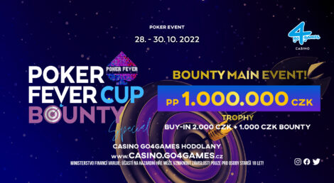 Czeka na Was popularny festiwal Poker Fever CUP, który w tym miesiącu zmieni się w Poker Fever Bounty CUP (28.10-30.10). Nowością będzie Main Event rozgrywany w formule bounty. Do harmonogramu powróci też turniej Mini High Roller.