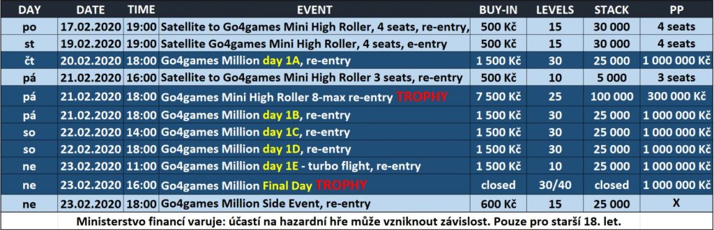 Serdecznie zapraszamy do przyjazdu do Ołomuńca i do walki o niemałe pieniądze w weekendowym minifestiwalu Go4Games MILLION (1.300.000 CZK GTD).