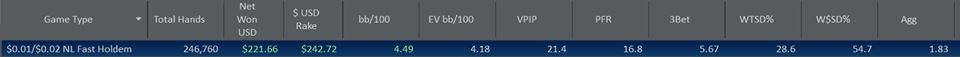 Inną sprawą, którą pasywni gracze w ogóle nie biorą pod uwagę, jest konieczność płacenia rake’u za oglądanie flopów (i kart na każdej innej ulicy). W tekście pod tytułem „Niepotrzebnie podpatrzone – Zakresy otwarć (odc.1)” precyzyjnie tłumaczyłem, dlaczego oglądanie flopów na mikrostawkach to bardzo kosztowne hobby. Zachęcam do zapoznania się z tym artykułem, a także do rzucenia okiem na grafikę ze statystykami, które na grupie Poker od podstaw umieścił jeden z grinderów z mikrostawek. Zobaczcie, ile prowizji zapłacił na najniższym limicie w ciągu 240.000 rozdań. Więcej niż wygrał. Szok!