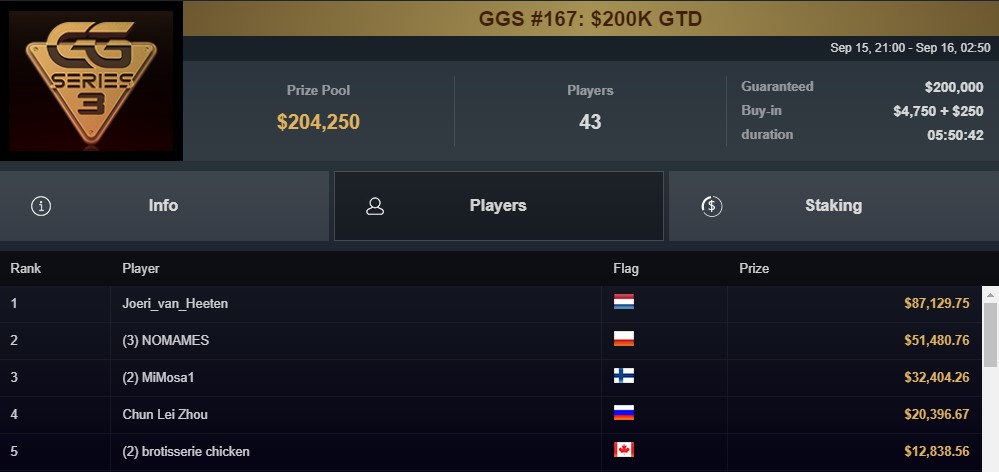 GGS #167 5.000$ – wygrana 51.481$