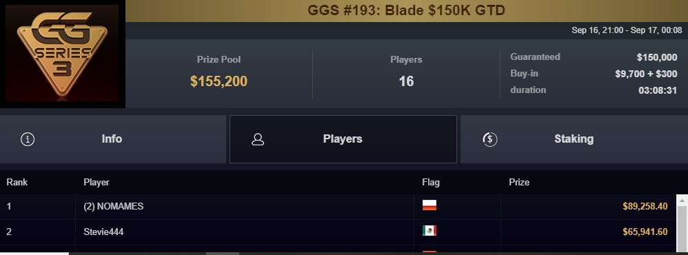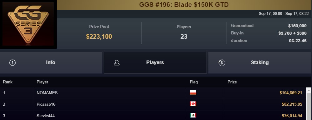 Kilka dni temu sprawdzaliśmy, jak radzi sobie tajemniczy i fenomenalny zarazem gracz kryjący się pod nickiem NOMAMES w rywalizacji w GGSeries 3. Przez trzy dni występujący pod polską flagą pokerzysta – niestety nie mamy potwierdzenia, że to jest Polak – zdołał wówczas osiągnąć przychód w wysokości ponad 900.000$.