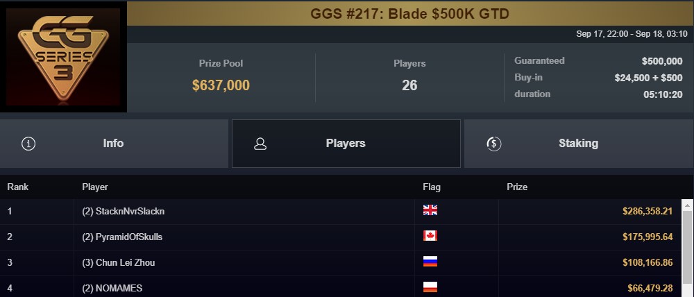 GGS #217 25.000$ – wygrana 66.479$