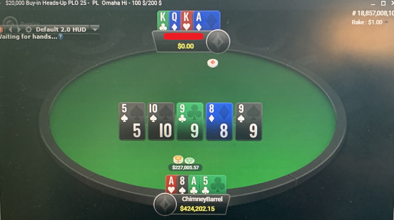 Od tamtych czasów wiele się zmieniło. Gry o setki tysięcy dolarów, które kiedyś były normą na Full Tilt Poker, właściwie nie chodzą. I w tym ogólnym high stakesowym marazmie online na PartyPoker odbywa się ośmiogodzinna sesja, w której Fin wygrywa 65 wpisowych od nieznajomego przeciwnika na blindach 100/200 PLO HU. Kelopuro tak opisuje to, co się wówczas wydarzyło: