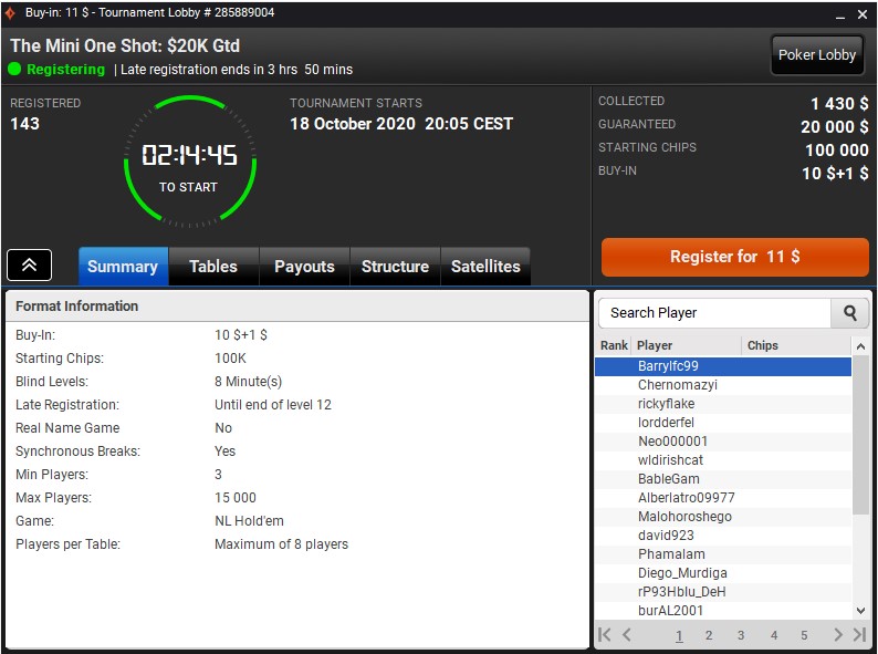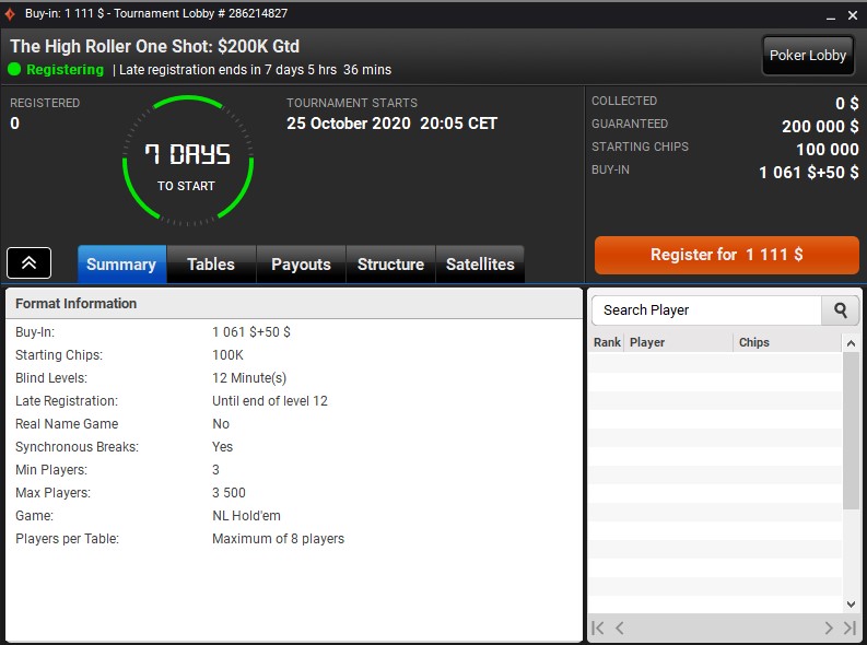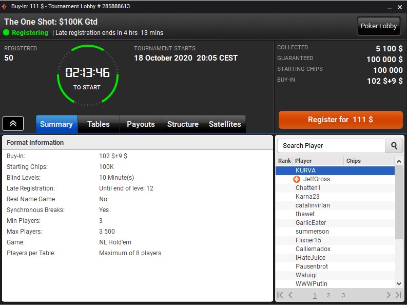Tym bardziej serce raduje się z racji tego, że w lobby turniejowym, i to w najlepszym „czasie antenowym”, pojawiły się turnieje w starym stylu. Mowa o wydarzeniach „The One Shot”, które rozpoczynają się o godz. 20:05.