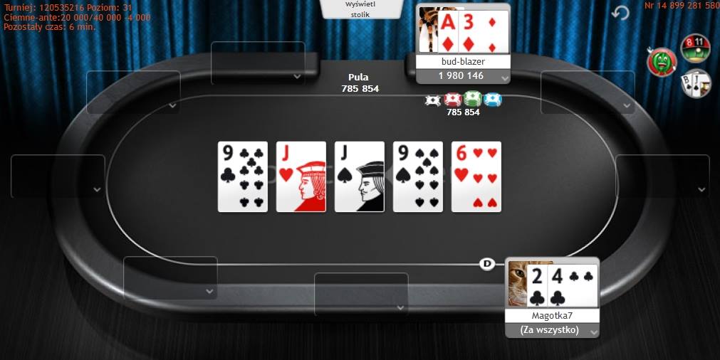 Niedzielne granie rozpoczęliśmy o godzinie 18:00 od satelity MTT z wpisowym $1, w której za każdym razem jest overlay, dzięki czemu jest ona bardzo opłacalna dla grających.
