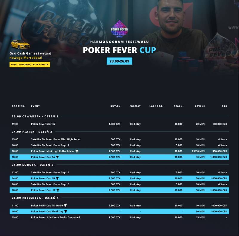 Przed nami festiwal Poker Fever CUP. Zapoznajcie się z harmonogramem rozgrywek i z najważniejszymi informacjami „logistycznymi”.