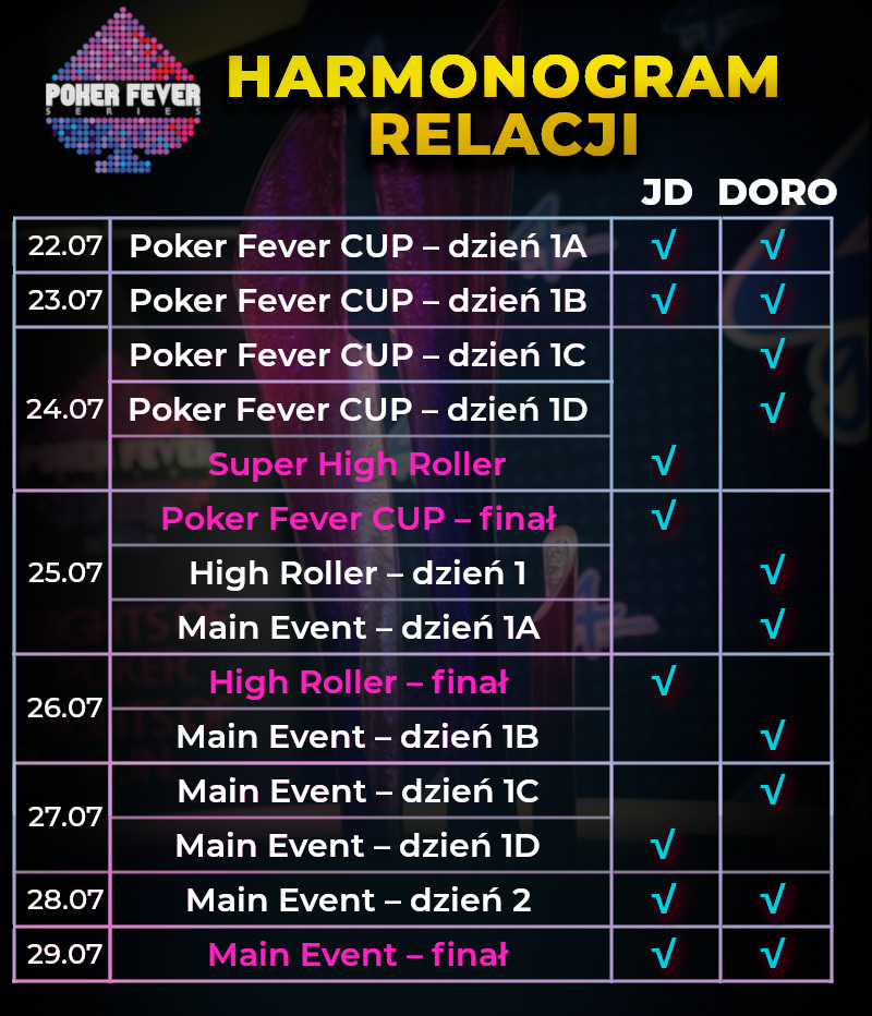 Nie regulujcie odbiorników. Festiwalowa rozgłośnia Poker Fever rozpocznie nadawanie od godz. 18:00. Zapraszam do śledzenia relacji każdego dnia, aż do wielkiego finału, który odbędzie się 29 lipca.