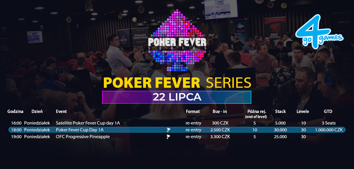 Poker Fever CUP – 1.000.000 CZK GTD (22-25 lipca), 2.500 CZK