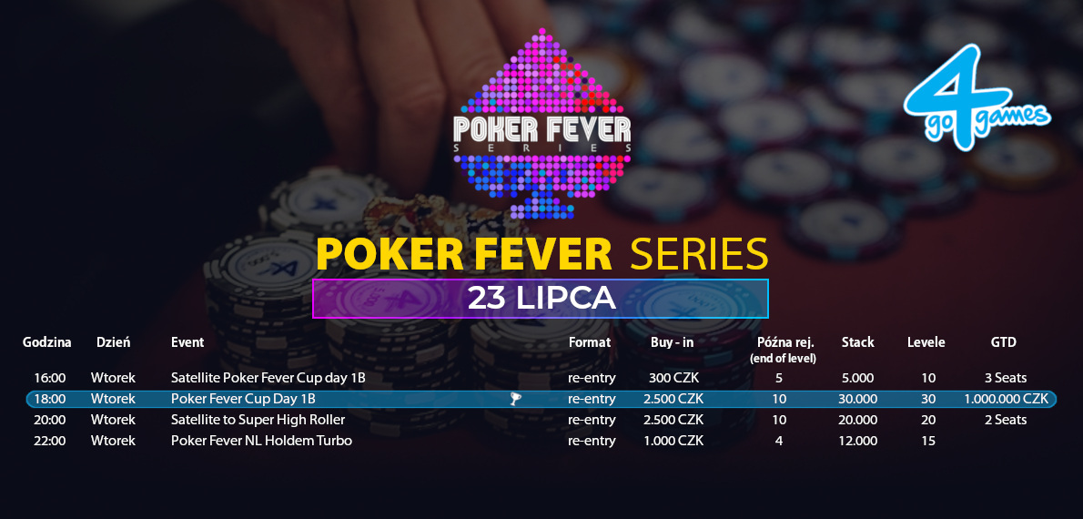 Priorytety nie ulegają zmianie. Głównym wydarzeniem jest dzień Poker Fever CUP 1B, który startuje o godz. 18:00. Na dwie godziny przed rozpoczęciem gry ruszy satelita za 300 CZK, w której gwarancja opiewa na trzy wejściówki do turnieju docelowego.