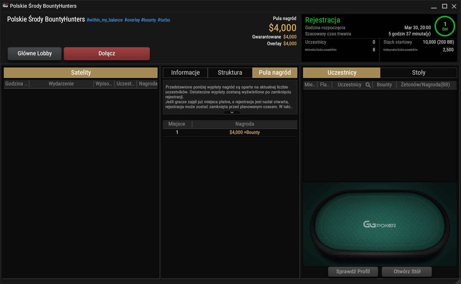 | 9 marca | Polskie Środy Bounty Hunters | 5,5$ | 2.500$ |