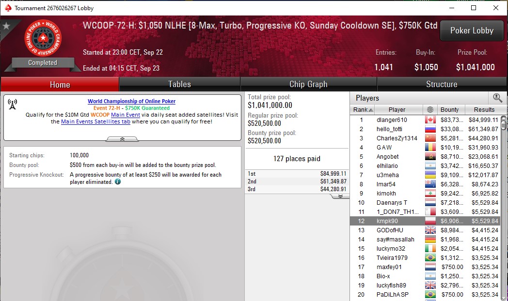 Rozstrzelali nam się nasi pokerzyści w ostatnią niedzielę WCOOP-a. Dzięki ich świetnej dyspozycji mamy do zaprezentowania kilka fantastycznych wyników, którymi chcemy się z Wami podzielić.