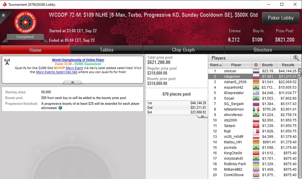WCOOP-72-M: 109$ NLHE, 500K GTD