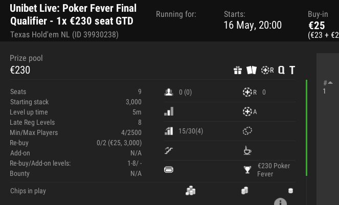 - Nazwa: Unibet Live: Poker Fever Final Qualifier – 1x 230€ seat GTD