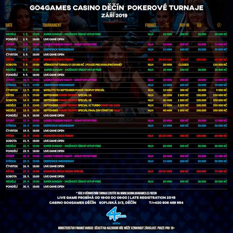 Duży pokerowy turniej, bufet, hostessy i darmowe drinki to kluczowe składniki eventu September Trophy Special w kasynie Go4Games w Děčínie.