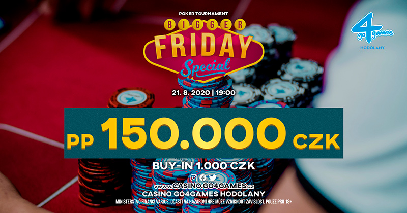 7 i 21 sierpnia możecie liczyć na specjalną edycję Friday Special, które rozgrywane będą pod nazwą Bigger Friday Specials, w których pula nagród wynosi aż 150.000 CZK. Wpisowe do tych turniejów wynosi jedyne 1.000 CZK. Stack startowy wynosi 100.000, a levele potrwają 20 minut.