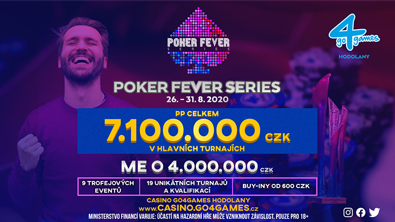 Popularny festiwal Poker Fever Series powraca do Go4Games Hodolany pod koniec sierpnia. W harmonogramie tego wydarzenia znajduje się 19 turniejów/satelit, a na zwycięzców czeka 9 unikalnych trofeów, wysokie wygrane pieniężne, a przede wszystkim wiele zabawy! Pula gwarantowana całego festiwalu wynosi aż 7.100.000 CZK.