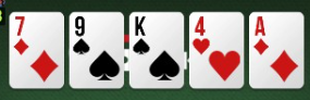 Ten flop jest niezły dla BB i dla Hero. Król jest tą kartą, która w dużej mierze faworyzuje gracza agresywnego, ale pozostałe dwie średnie karty grają trochę lepiej dla nas. Przeciwko betowi za 1/3 puli nie widzę innej drogi niż sprawdzenie. Fold byłby przedwczesny, a dla przebijania nie znajduje tutaj żadnego uzasadnienia. Nasz układ ma bardzo stabilne showdown value – boimy się właściwie tylko asa. HERO sprawdził.