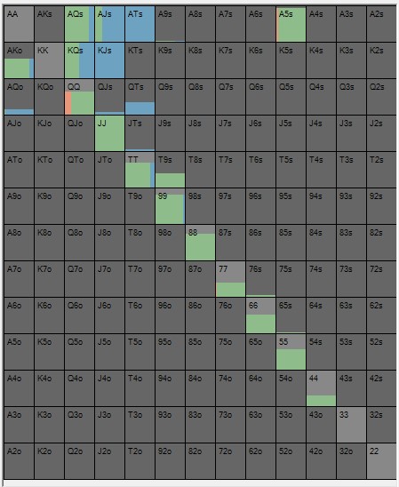 Gracz będący na pozycji ma przewagę equity. On nie będzie tutaj overfoldował, wręcz przeciwnie, będzie sprawdzał częściej niż wynikałoby to z samych oddsów. Na tak wczesnym etapie rozdania liczy się znacznie więcej czynników niż equity – to nie jest river – np. bycie na pozycji, realizacja equity, możliwości blefowania w późniejszej fazie, implied oddsy. Przy zagraniu za 75%, w warunkach, które byłyby neutralne, matematycznie powinniśmy liczyć na ok. 43% folding equity. Tutaj warunki nie są neutralne, są korzystniejsze dla gracza będącego na pozycji, który nie powinien foldować więcej niż w 30%, a więc wyraźnie rzadziej niż wskazuje na to tzw. pot odds norm.
