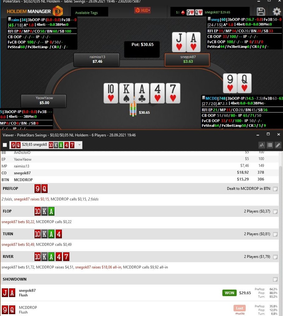 Czy łatwo wykonać taki fold? Pewnie trudno, ale nie jest to niemożliwe, oczywiście jeśli gramy A-game i nie przywiązujemy wagi do absolutnej siły ręki, tylko racjonalnie patrzymy na to, co się wydarzyło. Gorsze od naszego flushe nie przebijają ponownie, a pod względem blefowania, to na 100% spot underblefowany.