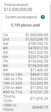 Odnoszę jednak wrażenie, że gracze rekreacyjni, dla których dobry wynik w tym turnieju może być złotym strzałem zmieniającym życie lub obecną sytuację w ich regularnych grach, mogą skorzystać na nieoptymalnej grze. W tym turnieju jest naprawdę wiele do zyskania, co może prowadzić do odstępstw od optymalnej strategii.