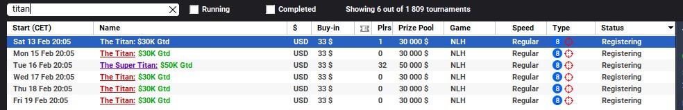 Promocja rozpoczyna się 16 lutego. Pierwszym turniejem z rangą „super” będzie The Titan, który we wtorek będzie miał w puli nagród aż 50.000$, a nie tradycyjnie 30.000$. Wpisowe nadal wynosi 33$, a turniej startuje o godz. 20:05.