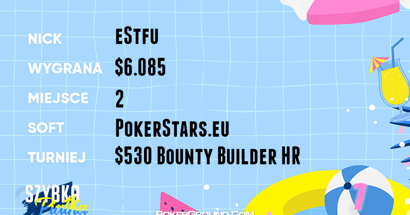 Najlepszy rezultat, co oznacza przyodzianie żółtego plastronu lidera, ukręcił wczoraj eStfu. Polak dzielnie walczył w rozgrywce $530 Bounty Builder HR, gdzie ostatecznie zakończył swoje zmagania na drugim miejscu. Jego bankroll powiększył się o $6.085.