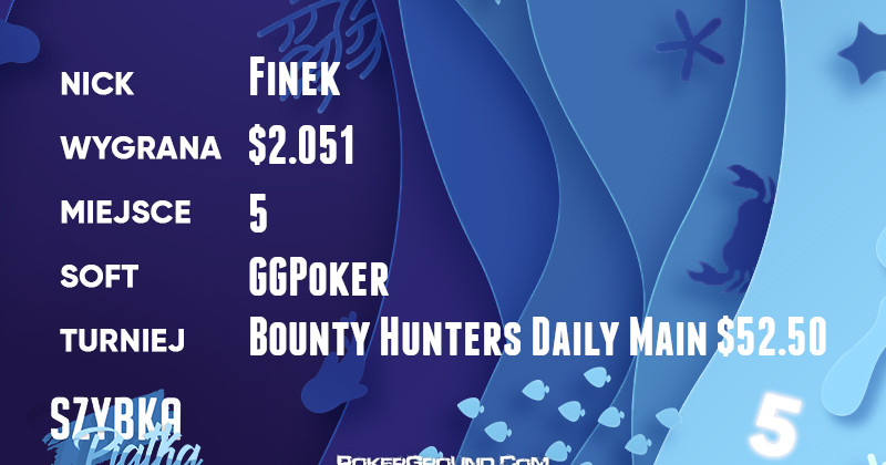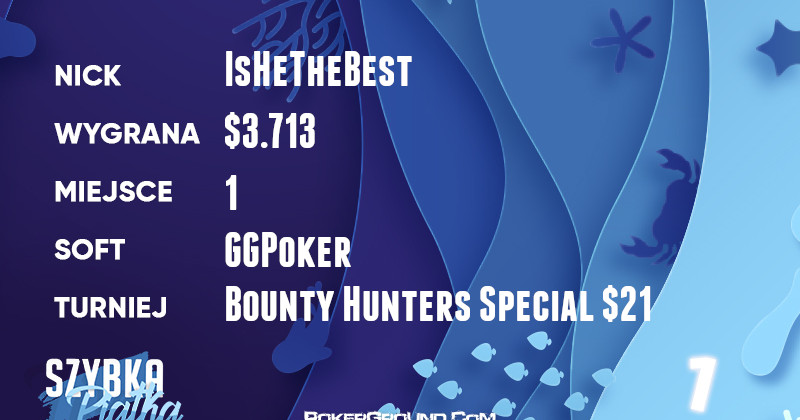 Przykładem gracza, którego witamy w „Szybkiej Piątce” po raz pierwszy, może być lider dzisiejszego zestawienia – IsHeTheBest. Nasz reprezentant nie miał sobie równych w turnieju Bounty Hunters Special $21, rozgrywanym na platformie GGPoker. Za swój wyczyn zainkasował $3.713.