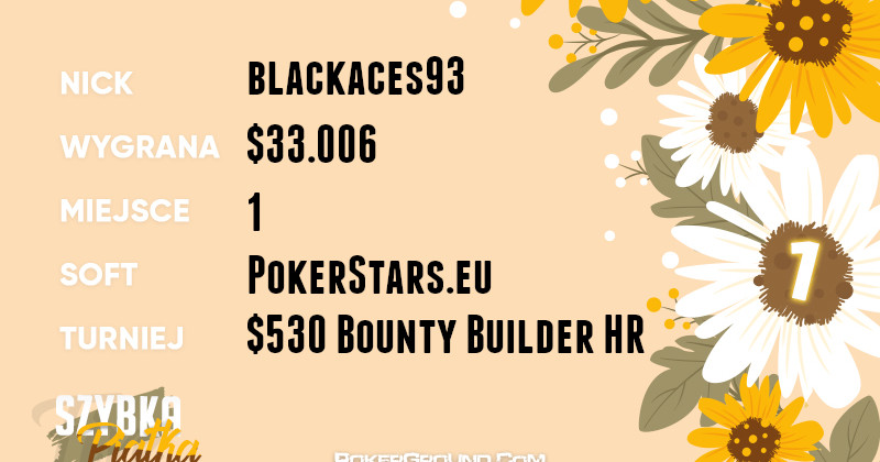 Podczas tych dwóch dni batalii najlepiej spisał się blackaces93, który nie dał rywalom szans w rozgrywce $530 Bounty Builder HR. Dziarskim krokiem udał się do kasy po wypłatę wynoszącą $33.006.