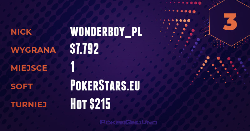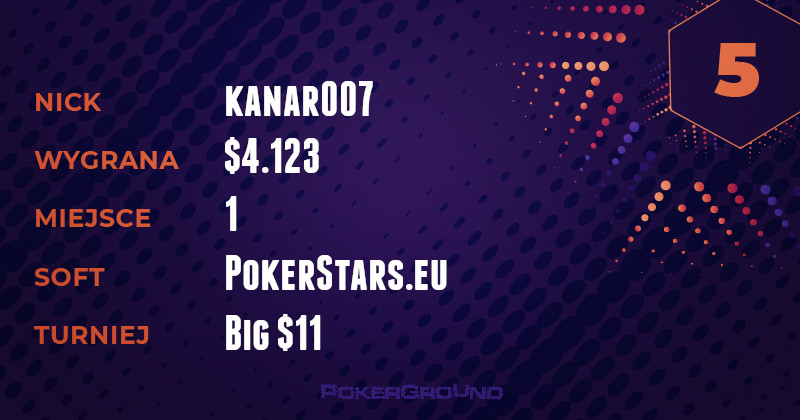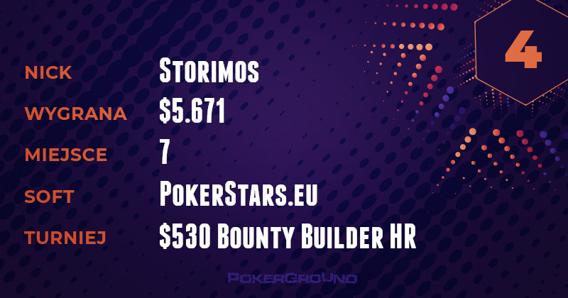 Wyczyny OMGACEACEACE nieraz zapierały dech w piersiach i wbudzały podziw. Jednak to, co powoduje u mnie rozszerzenie źrenic, to jego zabójcza wręcz regularność z jaką melduje się w naszych zestawieniach. Zwycięża po raz kolejny, dzięki „zawinięciu” turnieju Bounty Builder $109, za co otrzymał $16.137.