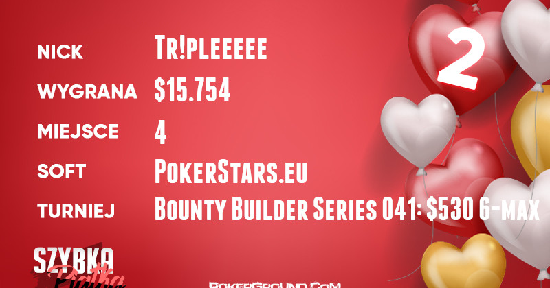 Osiem wyników, świetnych jakościowo, znalazło się na naszej liście podsumowującej wczorajsze zmagania przy wirtualnych stołach. Informacja dnia jest taka, iż na konto jednego z Polaków dopisujemy triumf w evencie Bounty Builder Series.
