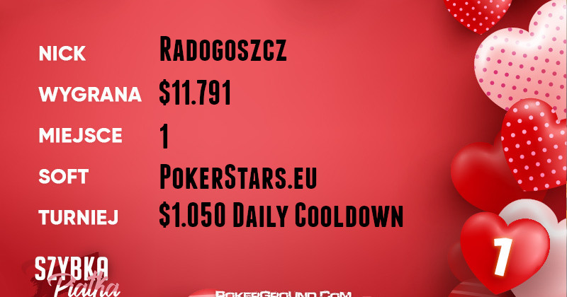 W świetnym stylu przypomniał o sobie Radogoszcz. Polak zasiał strach w sercach przeciwników w rozgrywce $1.050 Daily Cooldown do tego stopnia, iż żaden nie zdołał mu się przeciwstawić. Dzięki zwycięstwu jego konto powiększyło się o $11.791.