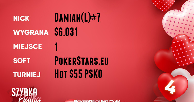 Niezwykle unikatowej rzeczy dokonał Damian(L)#7, który wygrał dwa razy…ten sam turniej! Zarówno w porannej jaki i wieczornej wersji Hot $55 PSKO nie znalazł się mocny na naszego reprezentanta. Ten w efekcie zainkasował prawie osiem tysięcy dolarów.