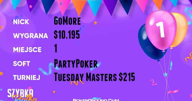 Żółty plastron lidera przyodziewa dzisiaj GoMore, który nie dał rywalom żadnych szans w rozgrywce Tuesday Masters $215. Do swojego bankrolla mógł dopisać $10.195.