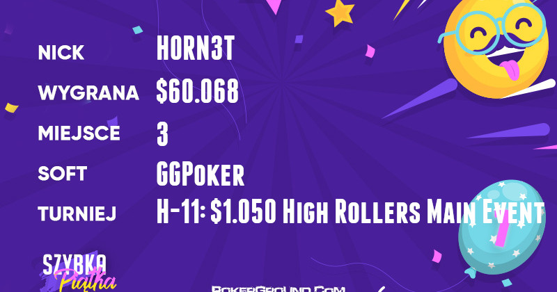 Mocno rywali żądlił w jednym z eventów GG Spirng Festiwal – H-11: $1.050 High Rollers Main Event – HORN3T. Efekt finalny imponujący, gdyż lider dzisiejszego rankingu zajął trzecie miejsce i skasował $60.068.