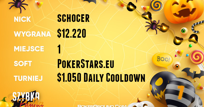 Niespełna trzech godzin potrzebował schocer, żeby rozprawić się z konkurencją w rozgrywce $1.050 Daily Cooldown. Kiedy już nie było kogo eliminować, nasz gracz mógł z satysfakcją kontemplować $12.220 dopisane do jego bankrolla.