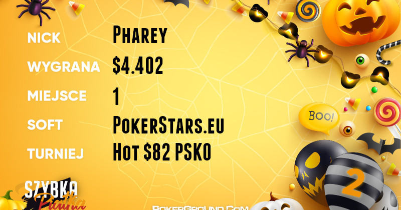 Zadowolony z siebie powinien być wicelider Pharey, który również w tempie wyrzucał rywali za burtę turnieju Hot $82 PSKO. Tu wypłata była nieco skromniejsza – $4.402 – aczkolwiek wkład we wpisowe nieporównywalnie niższy.