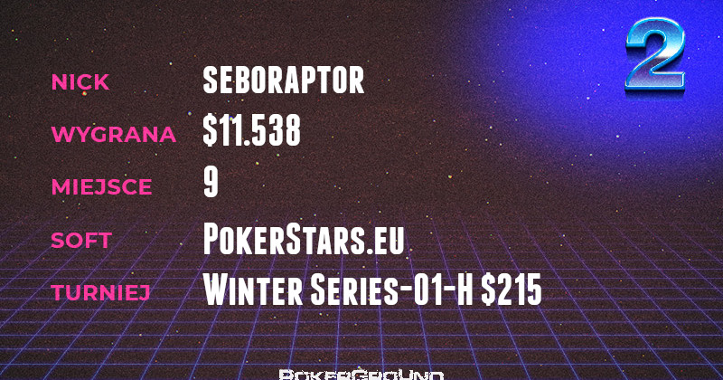Drugi najlepszy rezultat należy do gracza o nicku seboraptor. On również zakończył zawody na miejscu dziewiątym, ale miało to miejsce w evencie oznaczonym numerem jeden. W kasie turnieju nasz gracz otrzymał $11.538.