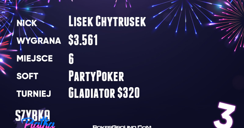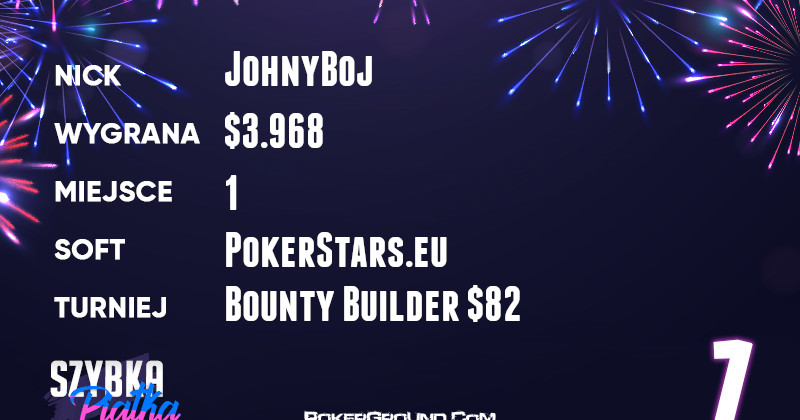 JohnyBoj przyodziewa dzisiaj żółty plastron lidera. Nie dał on żadnych szans rywalom w jednym z turniejów z serii Bounty Builder. Wpisowe $82 zamienił na wypłatę w wysokości $3.968.