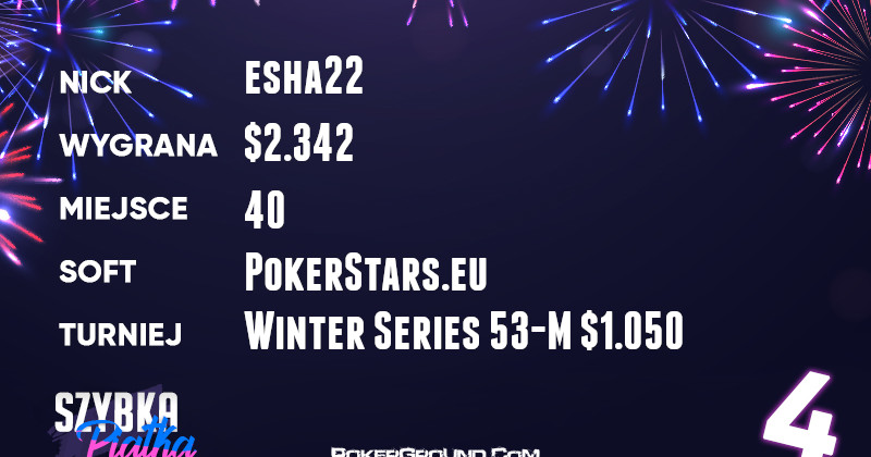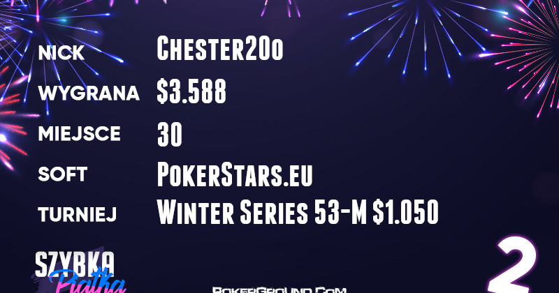 Najwyższy rezultat na festiwalu Winter Series wykręcił Chester20. Ukończył on zawody w evencie #53-M $1.050 na miejscu trzydziestym. Do kasy udał się po wypłatę wynoszącą $3.588.