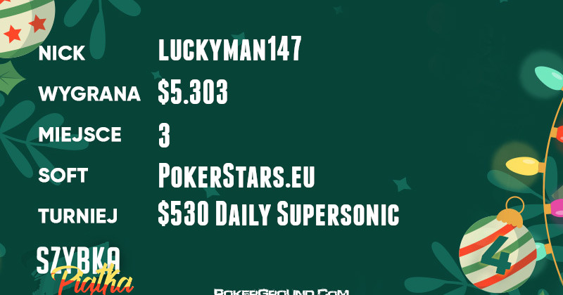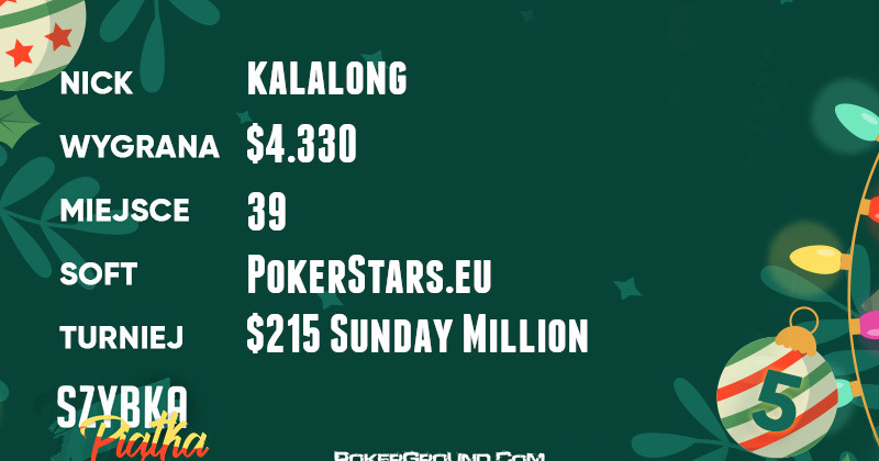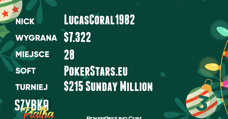 Aż trzy miejsca w rankingu są okupowane przez graczy, który toczyli boje w dwudniowym turnieju $109 Sunday Million. Najdłużej w stawce utrzymał się LFCfan23, kończąc swój udział na 25 pozycji. Dzięki temu wyczynowi, dołożył do portfela przyjemne $10.671.